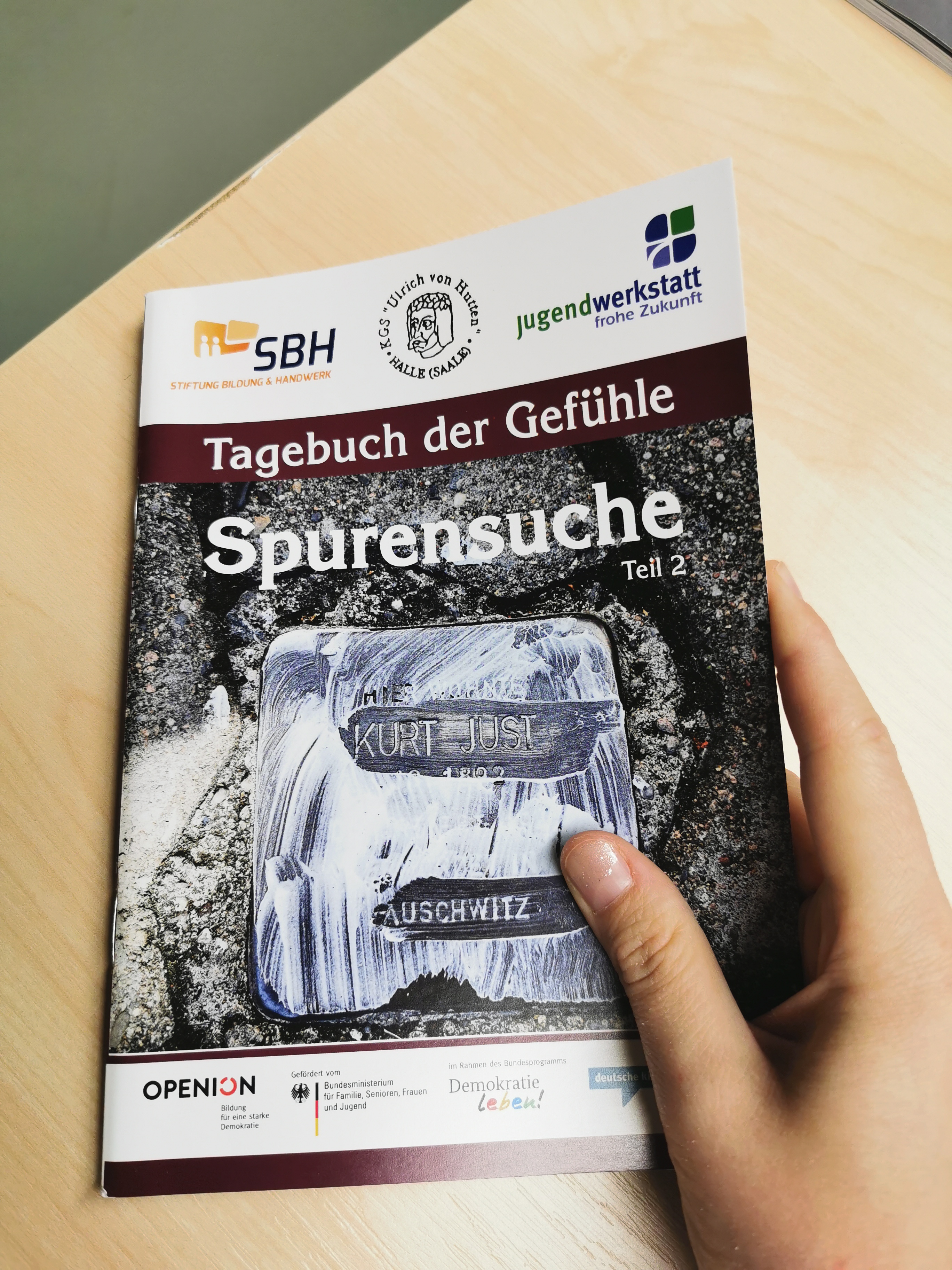 Im Rahmen des Projektes "OPENION - Bildung für eine starke Demokratie" der Deutschen Kinder- und Jugendstiftung haben sich die Bildungseinrichtungen SBH Südost GmbH und die Kooperative Gesamtschule „Ulrich von Hutten“ aus Halle gemeinsam auf Spurensuche begeben: Sie verfolgten die Schicksale deportierter Familien aus Halle. Sie suchten und putzten Stolpersteine, besuchten das Hallesche Stadtarchiv, das Gefängnis "Roter Ochse", die Synagoge und den jüdischen Friedhof der Stadt. Weiterhin besuchten die Projektteilnehmer für mehrere Tage die Gedenkstätte Auschwitz-Birkenau und verarbeiteten und verschriftlichten ihre Eindrücke und Gefühle in einem Tagebuch. Die Erfahrungsberichte über das Erlebte wurden im Rahmen der Interkulturellen Woche 2019 bereits zum 11. Mal in einer Lesung vorgetragen.