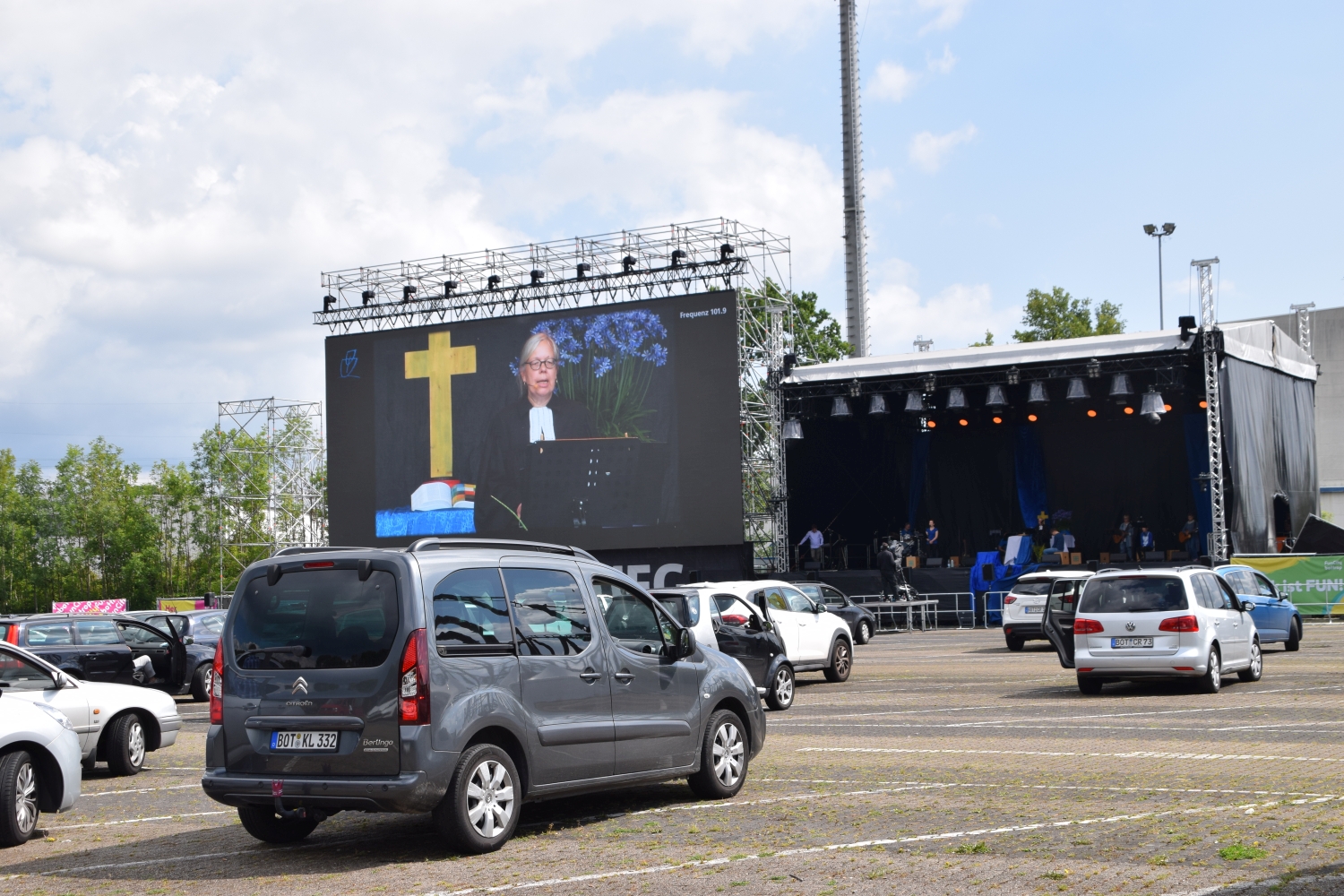 Die Corona-Pandemie hat zu einer Rückkehr des Autokinos geführt. Weil größere Veranstaltungen in geschlossenen Räumen nicht möglich sind, wird diese eigentlich so gut wie ausgestorbene Art des Zuschauens plötzlich wieder modern. Und so genießen die Menschen nun Filme, Konzerte oder Comedy-Veranstaltungen bequem aus dem Autositz heraus. Und wo schon eine Bühne steht, da bietet es sich doch an, auch einen Gottesdienst zu veranstalten. Das dachte sich auch die Evangelische Kirchengemeinde Bottrop und machte sich ans Werk.