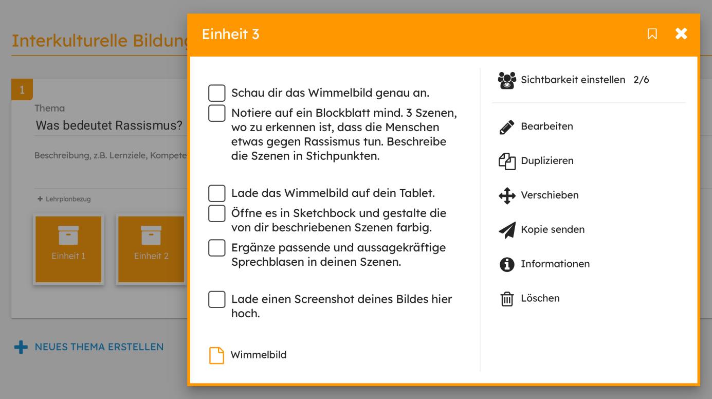 Die Siebtklässler:innen setzten sich zunächst inhaltlich mit dem Begriff "Rassismus" auseinander. Danach gestalteten sie im Rahmen des Kunstunterrichts individuell ausgewählte Szenen des Wimmelbilds am Tablet und ergänzten sie mit aussagekräftigen Sprechblasen zum Thema.