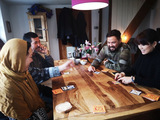 Die Malerin und Fotografin Faieqa Sultani (vorne rechts) musste aus Afghanistan fliehen. Mit ihrem Ehemann und dessen Eltern kam in Landsberg am Lech in einer Gastfamilie unter. Jetzt sind die beiden in ihre erste eigene Wohnung umgezogen.