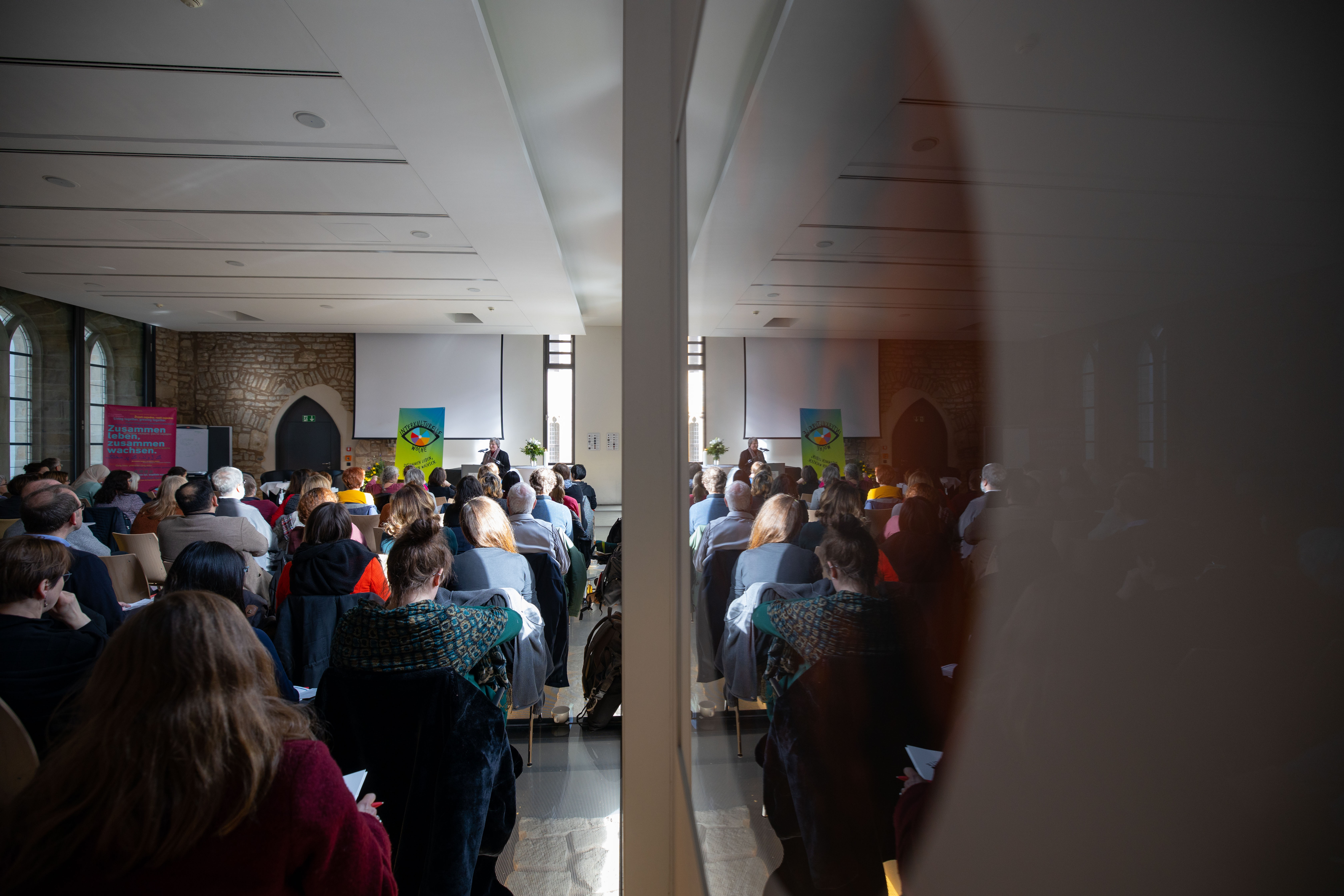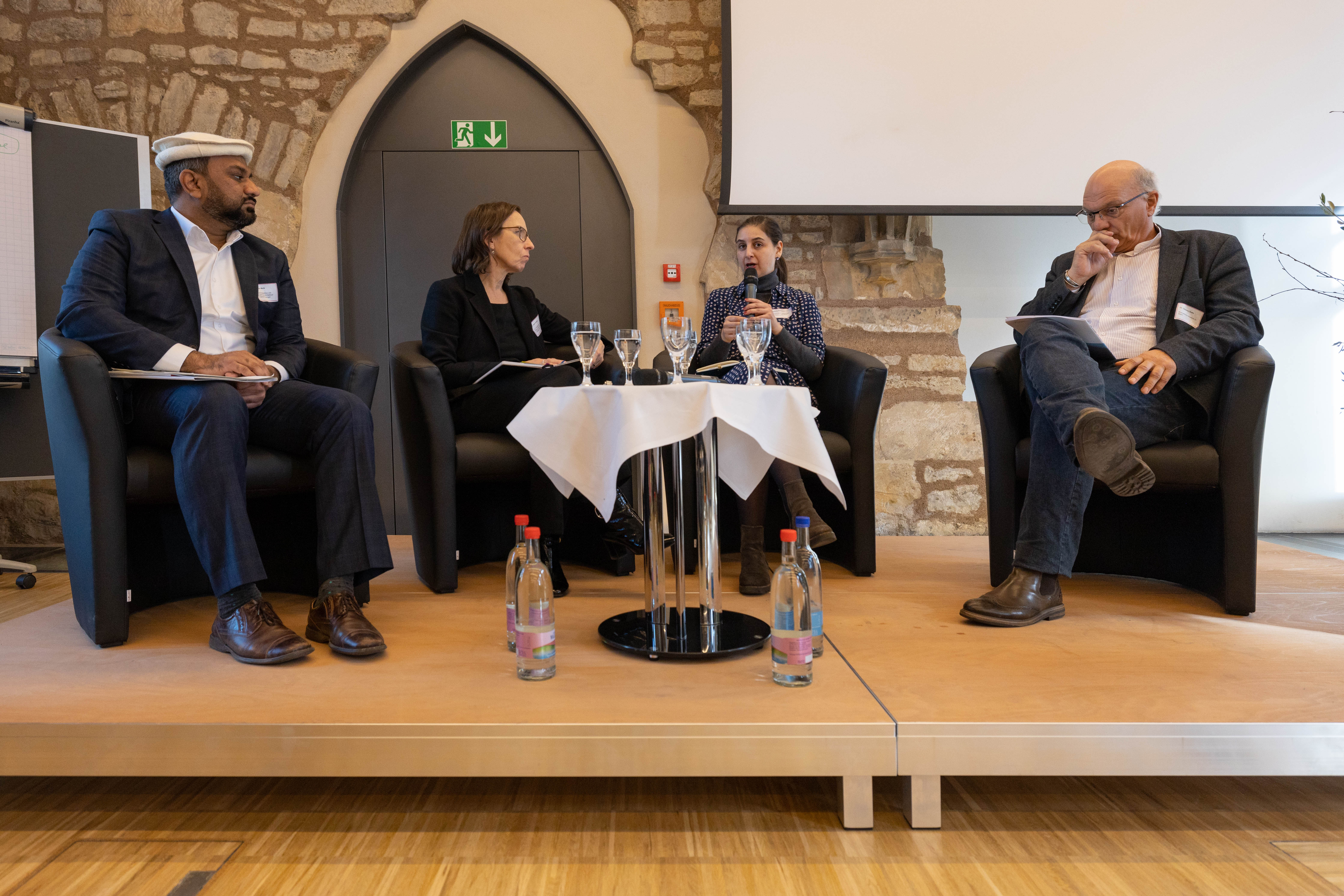 Das Tagungsprogramm startete nach der Begrüßung mit einer Podiumsdiskussion zum Thema "Bedrohte Räume der Vielfaltsgesellschaft". Es diskutierten Suleman Malik (Kommunalpolitiker und Sprecher der Ahmadiyya-Gemeinde Thüringen), der in Erfurt den Bau der ersten Moschee in Ostdeutschland außerhalb Berlins mitorganisiert und sich zahlreichen Anfeindungen ausgesetzt sieht, Dotschy Reinhardt (Musikerin, Autorin und Vorsitzende des Landesrates der Roma und Sinti Berlin-Brandenburg) und Christian Staffa, Studienleiter der Evangelischen Akademie zu Berlin und Antisemitismusbeauftragter der Evangelischen Kirche in Deutschland (EKD). Moderiert wurde die Runde von Beate Sträter, der Vorsitzenden der Fachgruppe Christen und Muslime in der Evangelischen Kirche im Rheinland. Eine Erkenntnis der Runde: Der Rassismus, der jetzt wieder stärker in Deutschland zutage tritt, war nie weg. "Das betrifft mich nicht erst jetzt. Ich bin mit Diskriminierung aufgewachsen", sagte etwa Reinhard, die als Sintezza in der Nähe von Ravensburg groß wurde.