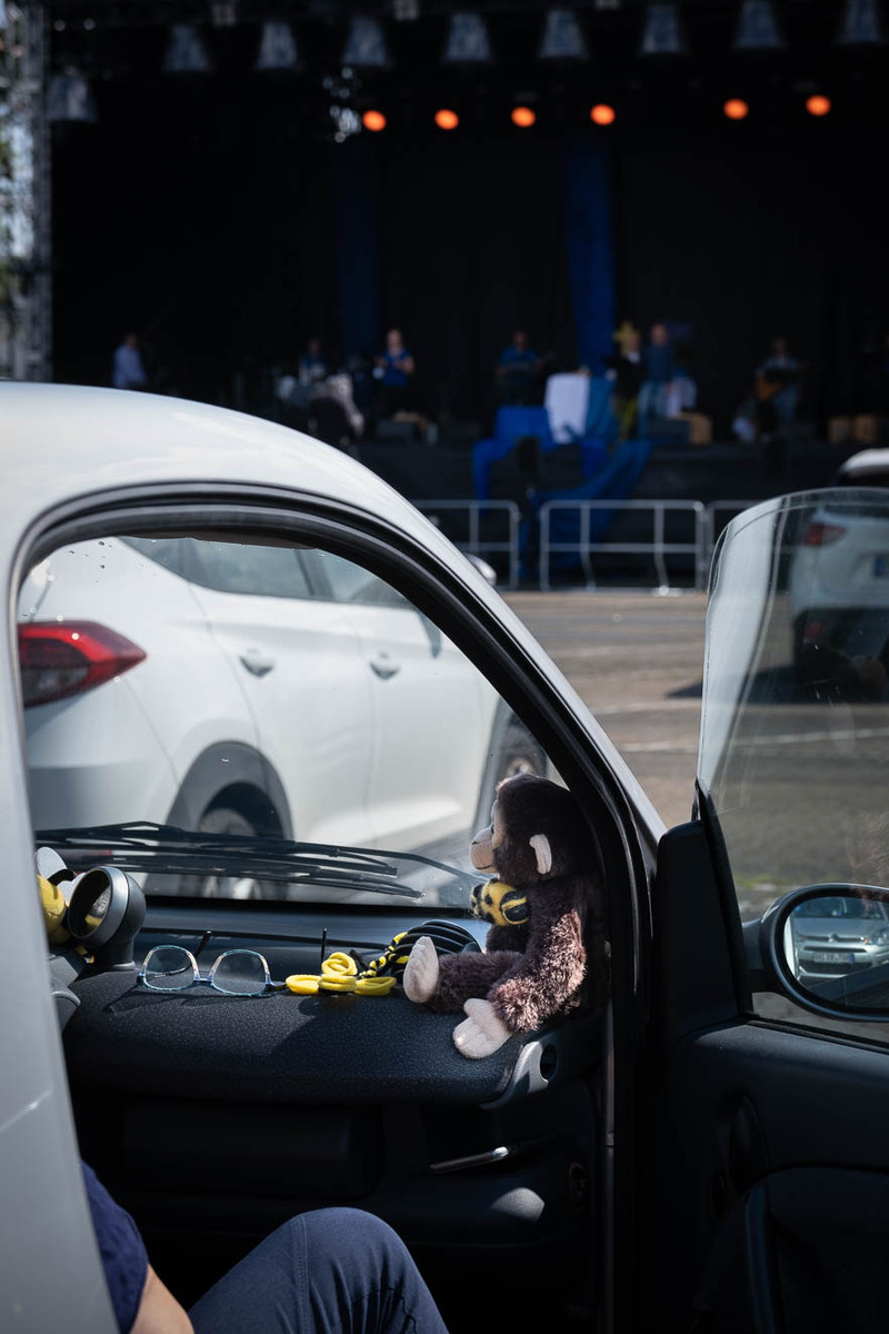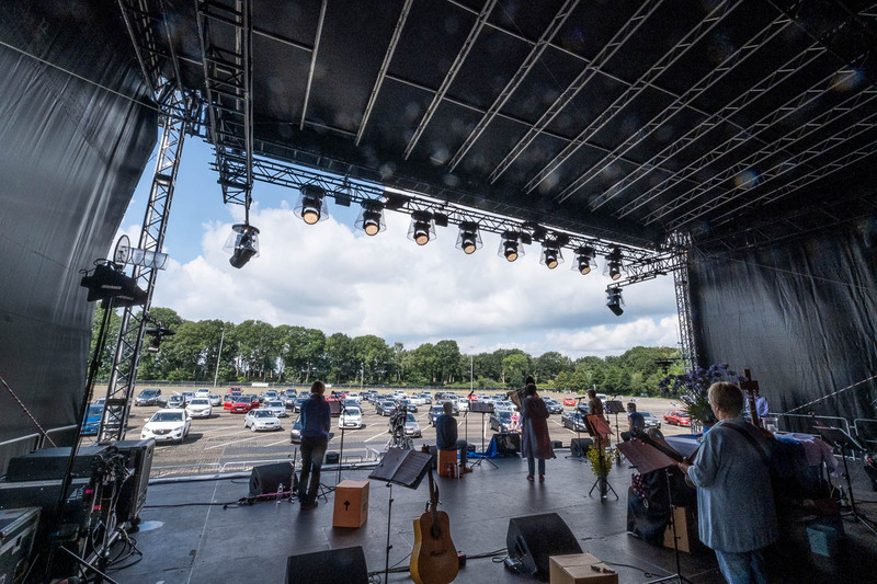 Das Ergebnis von zwei Wochen intensiver Vorbereitung war ein stimmungsvoller Gottesdienst mit 150 Fahrzeugen an einem ungewöhnlichen Ort. Denn das Autokino befindet sich direkt neben Movie Park, wo die Besucher*innen eher weniger die spirituelle Einkehr suchen, sondern den Nervenkitzel. So fand der Gottesdienst am 26. Juli 2020 vor der Kulisse riesiger Achterbahnen statt, von denen immer mal wieder das Kreischen der Fahrgäste herüberschwang.
