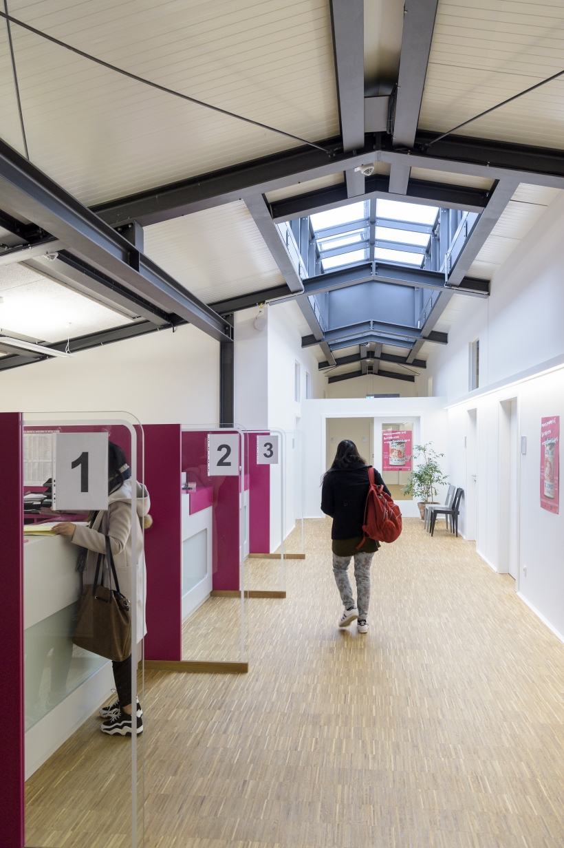 Dass das IWC etwas Besonderes ist, wird bereits im Wartebereich der Ausländerbehörde deutlich. Kein kalter Behördenflur, sondern ein luftiger Raum mit Säulen, einer Kaffeebar auf der einen und einer kleinen Bühne auf der anderen Seite. Denn wo tagsüber die Kunden der Behörde warten, finden abends Lesungen oder Partys statt, veranstaltet vom Interkulturellen Zentrum (IZ).