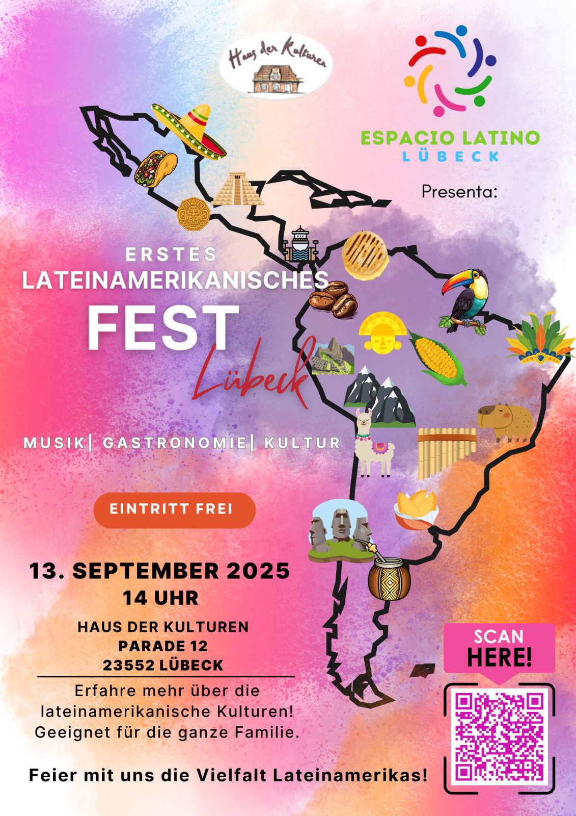 Unter dem Motto »dafür!« organisiert das Haus der Kulturen die »Interkulturellen Wochen« 2025 in Lübeck. Unter der Schirmherrschaft des Lübecker Bürgermeister Jan Lindenau finden im Zeitraum vom 1. September bis zum 3. Oktober 2025 verschiedene Veranstaltungen im Kultur bereich statt: Konzerte, Kreativangebote, Tanz, Ausstellungen, Feste, Vorträge und vieles mehr.