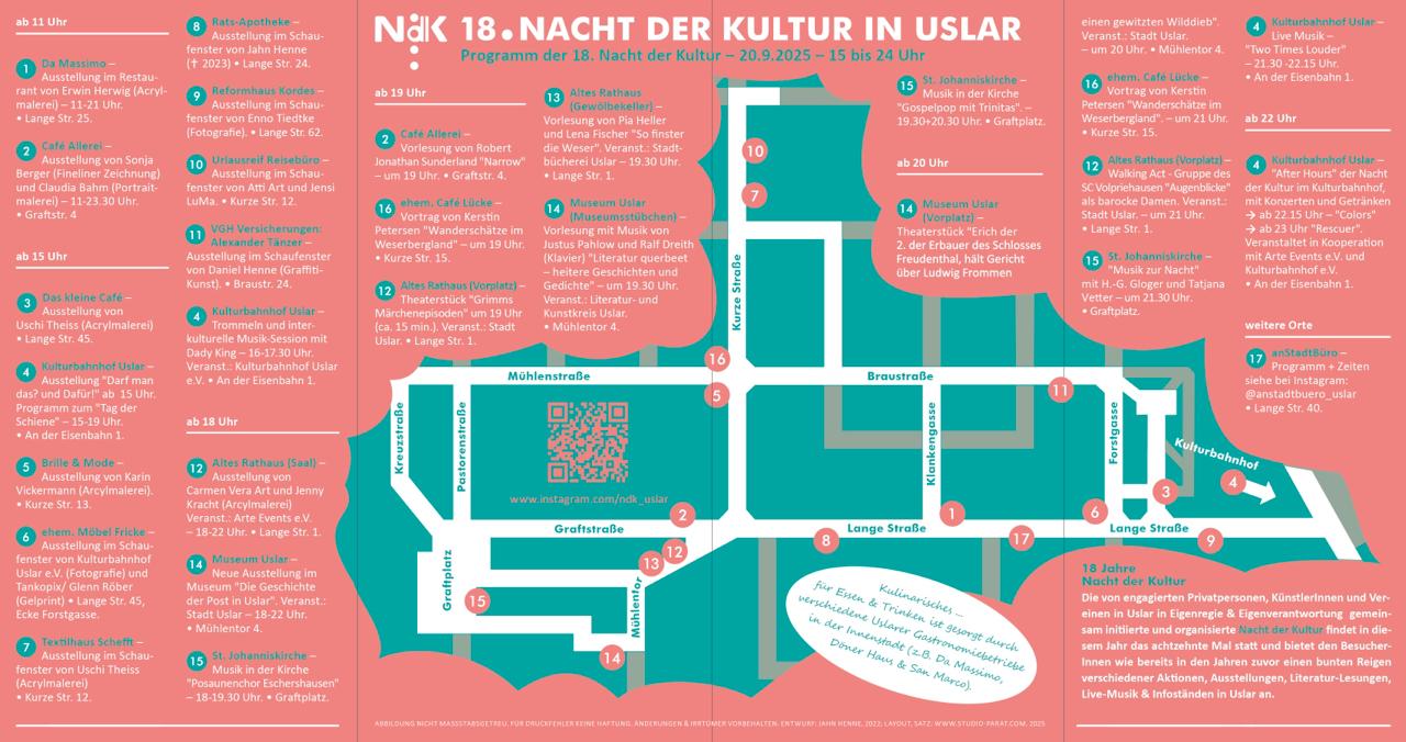 Zur Nacht der Kultur Uslar am 20.9.2025 findet u.a. ein Trommelworkshop und interkulturelle Session mit Dady King aus Gambia statt. Die Nacht der Kultur Uslar findet ansonsten in der gesamten Uslarer Innenstadt statt.