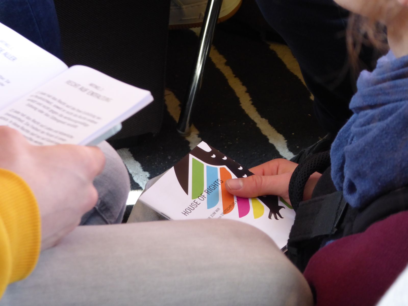 Die House-of-Rights-Wanderausstellung zu Grundrechten und Antidiskriminierung zieht, abhängig von Kapazitäten und Ressourcen, bundesweit von Ort zu Ort und leistet lokal Aufklärungs- und Präventionsarbeit.