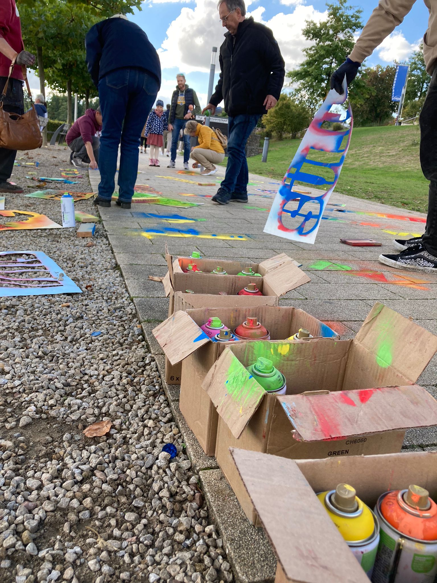 - 2 Helfer*innen für das sprayen (sie sind die ganze Zeit präsent, damit z.B. auch wirklich nur die Schablonen benutzt werden und am Ende ein schöner Weg entsteht)