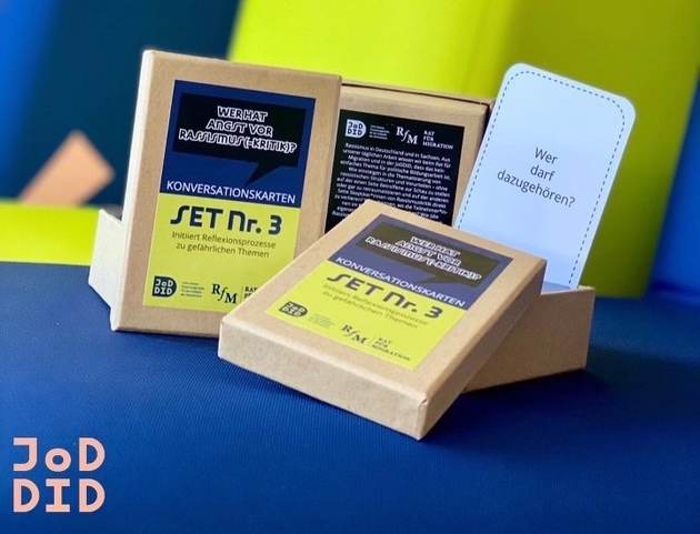 Das Set "Wer hat Angst vor Rassismus(-Kritik)?" kann genutzt werden, um genau jene Fragen zu stellen und Reflexionsprozesse zu initiieren. Das Set ist in jeder Zielgruppe und ab dem Jugendalter nutzbar und kann kostenlos bestellt werden per E-Mail an joddid-shop@tu-dresden.de.