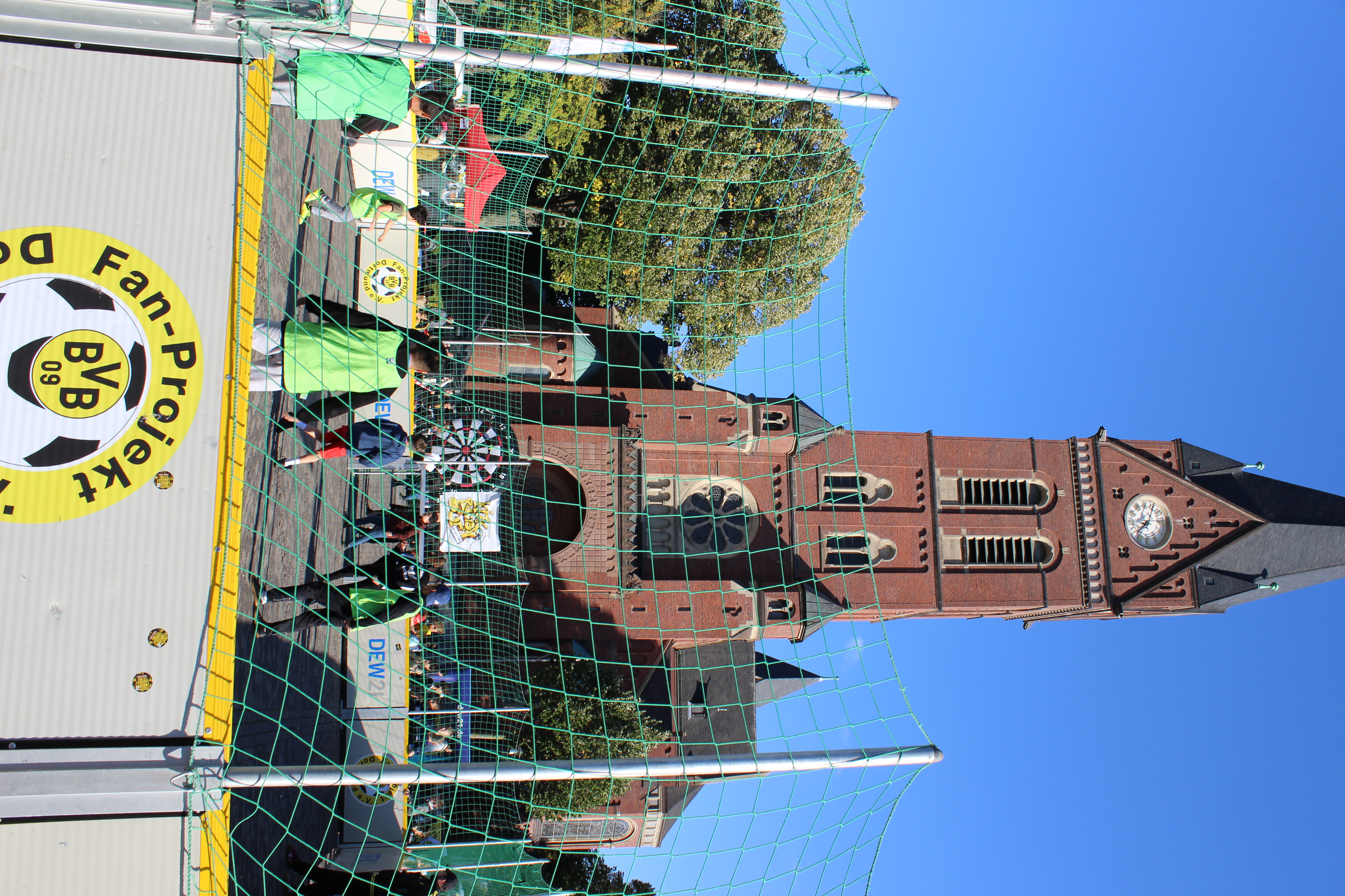 Das Fanprojekt ist mit einem Team an Helfern angereist so dass die eigentliche Durchführung der Aktion keine zusätzlichen Helfer benötigte. Als Team haben wir die Aktion aber dann mit bis zu drei Personen betreut, und dies ist auch ratsam, um mit den Menschen ins Gespräch zu kommen, einen Gesamtüberblick zu behalten und um hinterher gemeinsam aufzuräumen. Es können auch eigenständig mobile Soccer-Anlagen angemietet werden. Dann bedarf es deutlich mehr Personal und es ist auch mehr Zeit für den Auf- und Abbau einzurechnen.