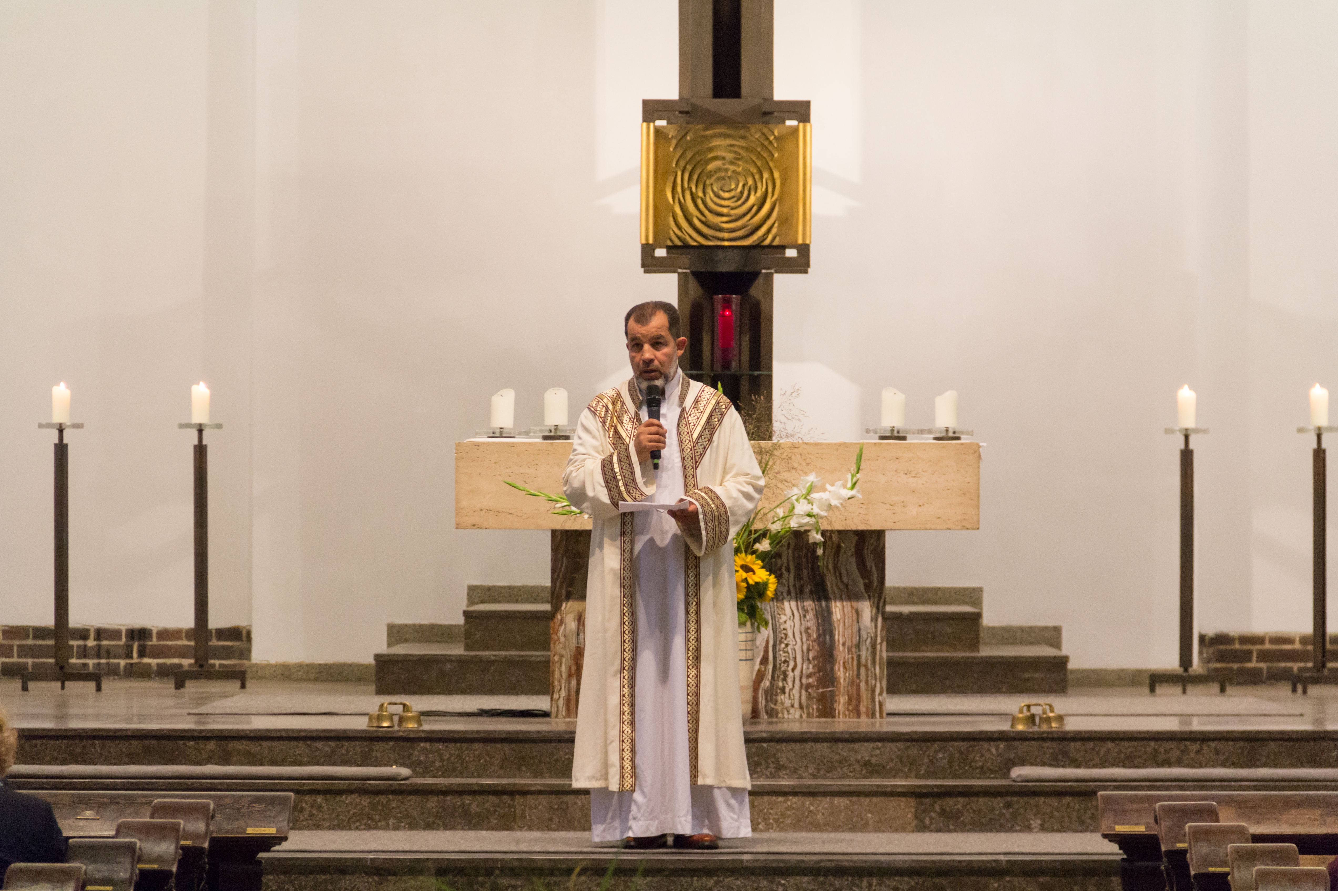 Zum Start der 45. Interkulturellen Woche in Berlin wurde in der Gemeinde St. Christophorus in Neukölln ein interreligiöses Friedensgebet mit einem politischen Statement veranstaltet, anschließend wurden zwei Ausstellungen eröffnet.