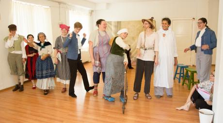 Mittlerweile reicht die Altersspanne der Theatertruppe von 10 bis 57 Jahren, die Schauspielerinnen kommen aus fast 15 verschiedenen Ländern. Sie proben einmal pro Woche, gespielt wir Aktuelles und Zeitloses, nach Vorlage oder frei improvisiert. Etwa zwei Mal im Jahr finden öffentliche Werkstattaufführungen statt – 2018 kam die Vorstellung während der Interkulturellen Woche dazu.