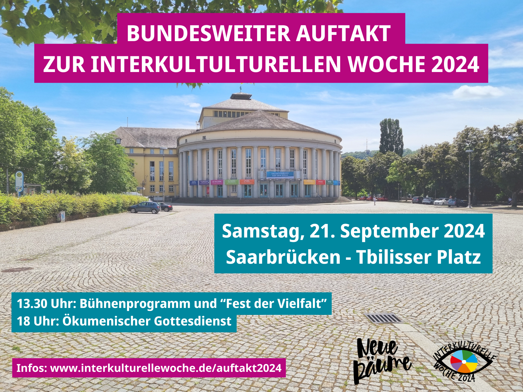 Das Fest und der anschließende ökumenische Gottesdienst schaffen den perfekten Rahmen, um das Motto der Interkulturellen Woche „Neue Räume“ mit Leben zu füllen. Veranstalter sind der Ökumenische Vorbereitungsausschuss für die Interkulturelle Woche in Frankfurt und die Landeshauptstadt Saarbrücken, in Kooperation mit der Evangelischen Kirche im Rheinland und dem Bistum Trier.