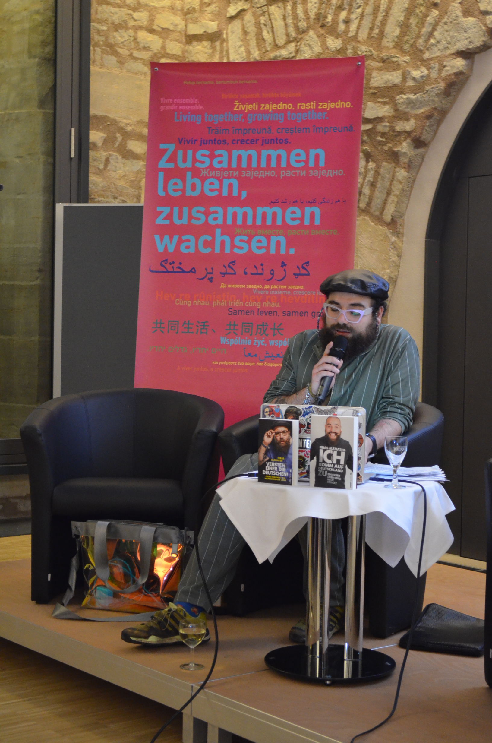 Zum Abschluss des ersten Tages präsentierte der Berliner Comedian, Autor und YouTuber Firas Alshater "Mehr als eine Lesung". Dabei brachte er den Teilnehmenden seine Sicht auf Deutschland und die Deutschen näher und berichtete aus seinem Leben. Vor einigen Jahren musste er aus seinem Heimatland Syrien fliehen, weil er dort wegen seiner Tätigkeit als Journalist verhaftet und gefoltert worden war.