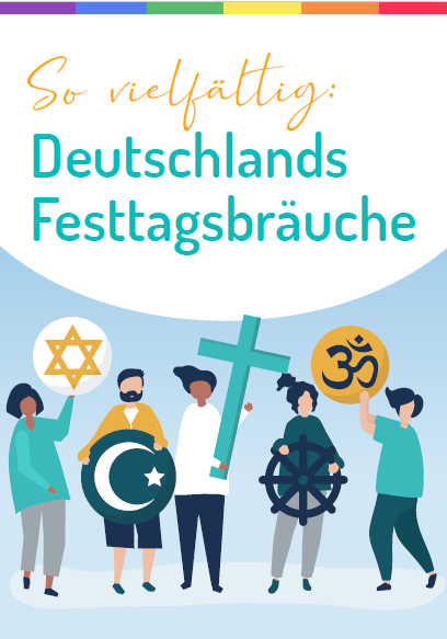 Innerhalb eines jeden Jahres sind Feiertage besondere Höhepunkte, auf die sich die Menschen freuen. Die Menschen sind sich jedoch über den Ursprung solcher Feste und deren Tradition oft nicht mehr bewusst. Das kostenlose E-Book “Festtags-Guide: Bräuche, Feste, Feiertage – so vielfältig feiert Deutschland“ informiert über die Ursprünge der verschiedenen Feste und deren Bräuche. Ein interaktiver Kalender zeigt, wann diese Feste gefeiert werden. Datum, Anlass und Herkunft werden näher erklärt. Damit ist er auch für Organisierende der Interkulturellen Woche hilfreich, wenn religiöse Feste und Bräuche thematisiert werden sollen.